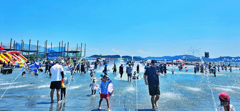 그리고 점심을 먹고 주변에 분수공원을 둘러보고 바로 옆에 있는 노을 전망대를 들려 보았는데 빨간 다리가 바다를 가로질러 이쁘기도 했습니다.