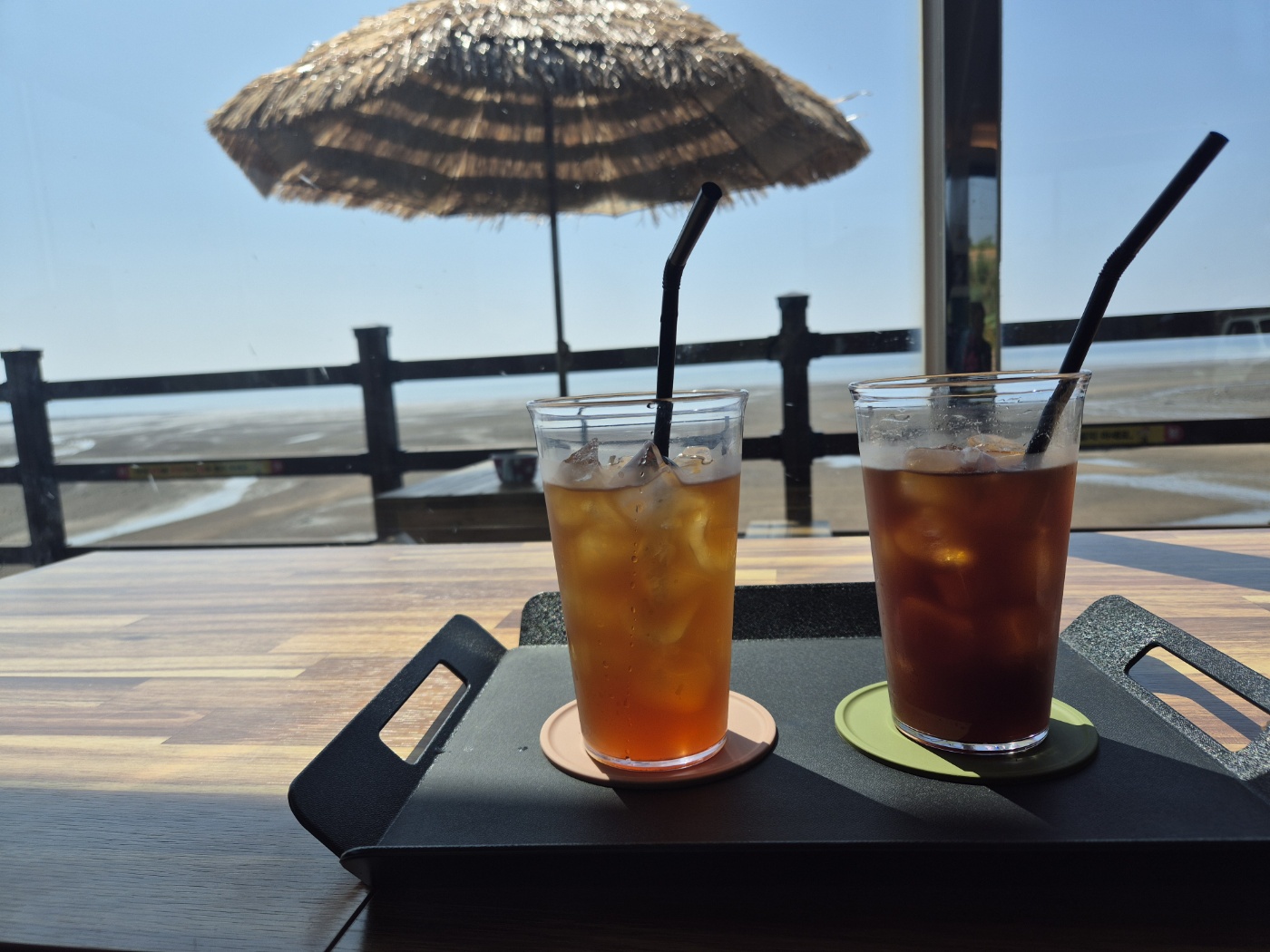 카페에 들러 시원한 음료와 몸을 쉬게 하니 여행을 잘 왔구나 하는 행복감이 밀려왔다. 물이 다 빠진 뻘이 가득한 바다지만 넓게 펼쳐진 빈 바다를 보고 있노라니 여행의 여백이 생긴 것 같아 한참을 쉬어 갔다.