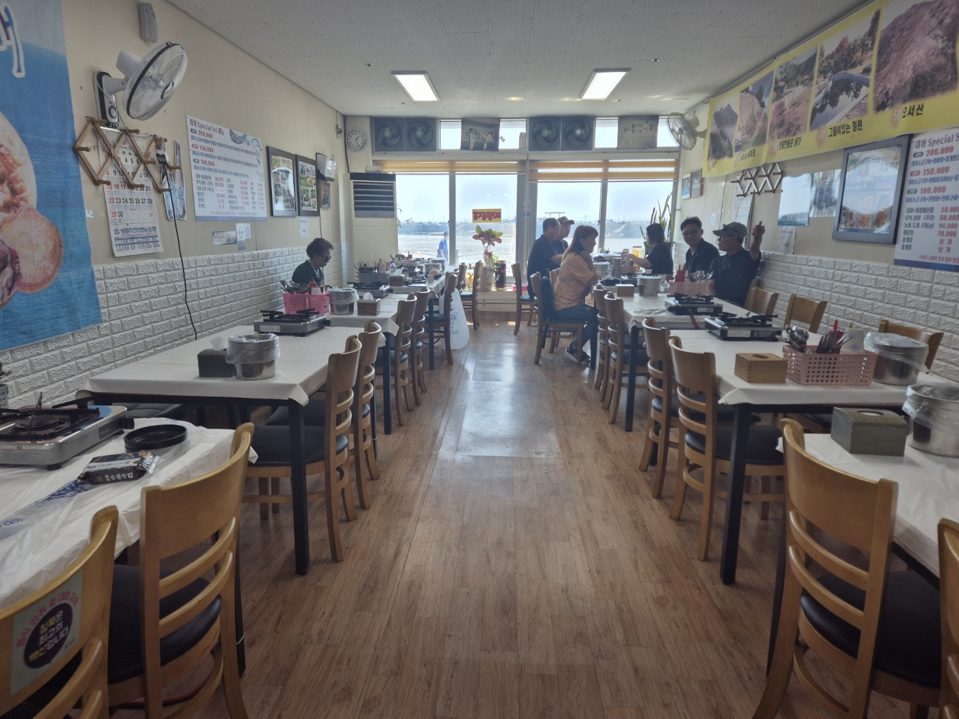 대하축제에 갔으니 대하를 먹어야 하겠죠 '지인찬스'를 이용해 '온양수산'으로 갔습니다. 바다가 창너머로 보이는 식당이었는데 바닷물이 다 빠진 후라 갯벌만 남아있는 모습이 조금 아쉬웠습니다.